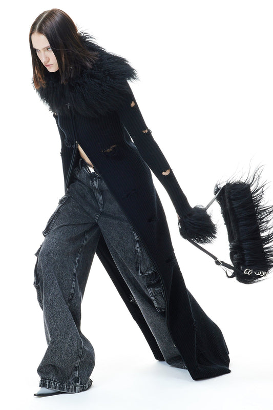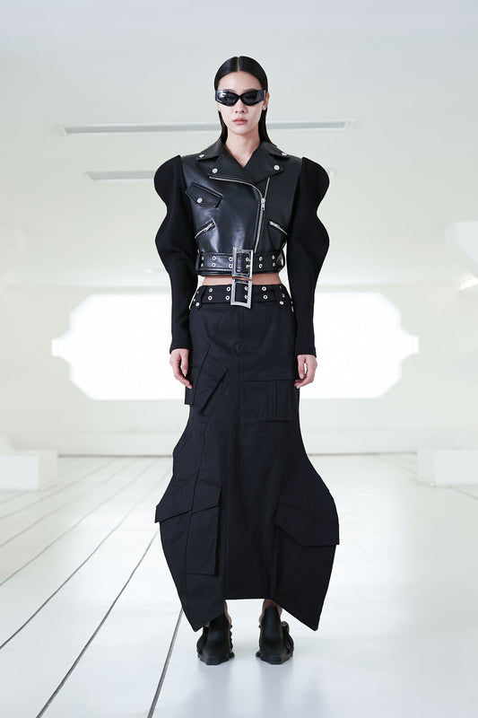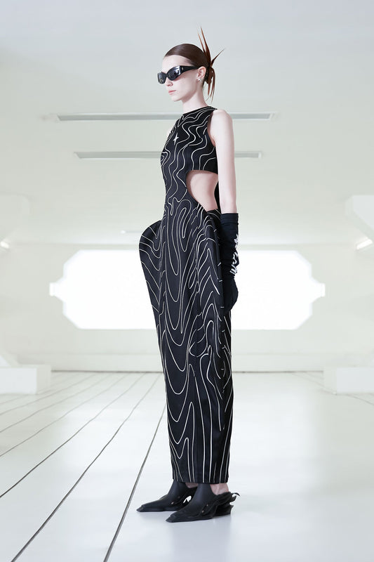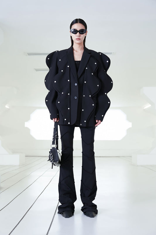 Acetate Wool 3D Wavy Sleeve Metal Construction Suit